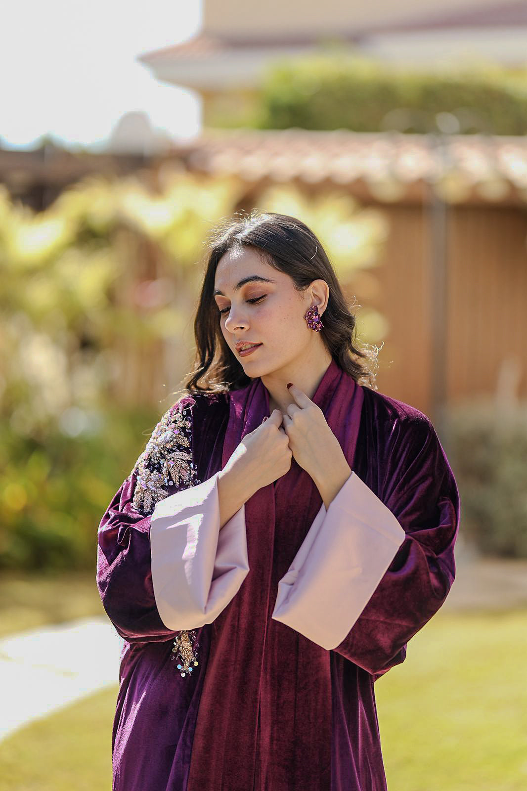Finished with soft blush cuffs for subtle contrast, this flowing kaftan offers an elegant balance between statement detail and effortless wearability. Perfect for sophisticated daytime looks or intimate evening occasions, it reflects Wujud’s signature blend of heritage craftsmanship and modern elegance.