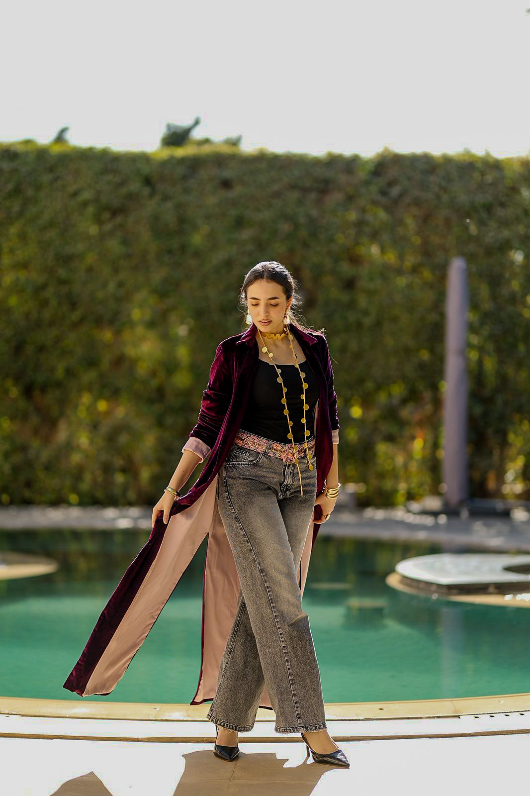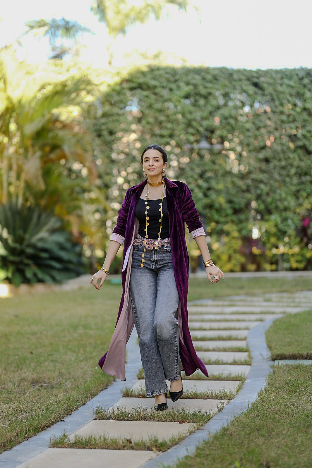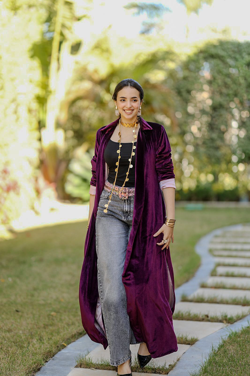 A statement Qaftan crafted in rich plum velvet, designed for effortless elegance and modern layering.